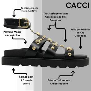 Descubra o equilíbrio perfeito entre estilo e conforto com nossa Sandália Cacci, uma combinação perfeita entre moda e conforto. Com um design moderno, ela oferece uma opção versátil para quem busca praticidade sem perder o charme.