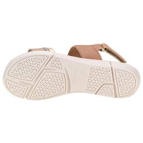 A Sandália Feminina Flat Modare é confeccionada em Napa de alta qualidade com detalhe metalizado, aplicação de strass, acabamento em costura, fechamento por fita aderente, forro em têxtil, palmilha em EVA com esferas massageadoras e solado em borracha antiderrapante com salto baixo de quatro centímetros.