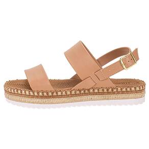 Sandália Feminina Flat Moleca 5447518 de salto baixo com solado de 3 cm. Feita em Napa Turim, com palmilha em EVA e sola em borracha. Acabamento colado/costurado e fechamento por fivela para um ajuste seguro e confortável. Ideal para o dia a dia com elegância.