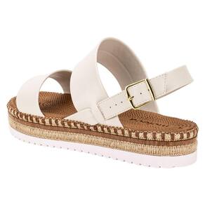 Sandália Feminina Flat Moleca 5447518 de salto baixo com solado de 3 cm. Feita em Napa Turim, com palmilha em EVA e sola em borracha. Acabamento colado/costurado e fechamento por fivela para um ajuste seguro e confortável. Ideal para o dia a dia com elegância.