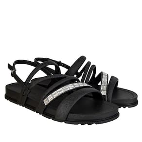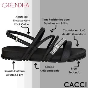 Feita em material PVC de alta qualidade, com seu solado flatform antiderrapante e com palmilha anatômica. Com suas tiras resistentes e firmes com aplicações incríveis de brilhos.