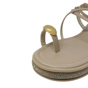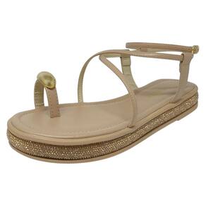 Design moderno e glamouroso: tira de dedão com detalhe metalizado e solado flatform com aplicação de glitter, que trazem brilho e sofisticação ao visual.