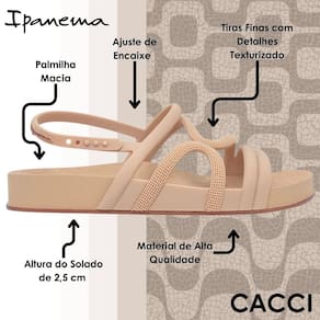 A Sandália Flatform Ipanema é a escolha perfeita para quem busca um equilíbrio entre conforto e elegância. Com um design moderno e detalhes que encantam, ela se tornará sua companheira ideal para diversas ocasiões.