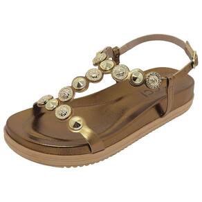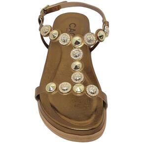 As tiras resistentes ornadas com pedrarias dourado, proporcionam não só um visual delicado e elegante, mas também um caminhar seguro e confortável. Feitas com materiais de alta qualidade, elas são projetadas para resistir ao uso diário sem perder a flexibilidade ou o charme.