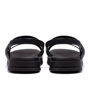 O modelo é formado por tiras que envolvem o pé, proporcionando um design elegante e versátil.