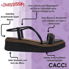 Sandália Feminina Flatform Texturizada Conforto Mississipi - Preto - 36