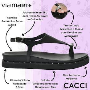 A sandália Papete da Via Marte é uma opção deslumbrante para quem procura um calçado que combine estilo e conforto. Seu design inovador apresenta uma sola flatform cravejada, destacando-se pela modelagem cuidadosa das peças. Um elegante enfeite sobre o dedo adiciona um toque de charme e personalidade ao modelo. Perfeita para elevar qualquer look, esta sandália é ideal para quem deseja um toque de elegância em seu visual.