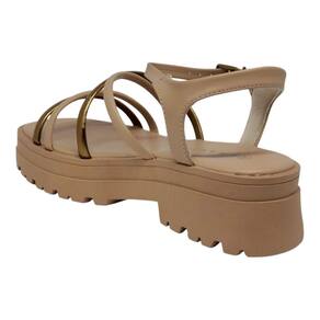 Cabedal em material sintético de alta qualidade: Com tiras finas, resistentes e macias, o cabedal combina elegância e durabilidade, mantendo o visual impecável e o toque confortável.