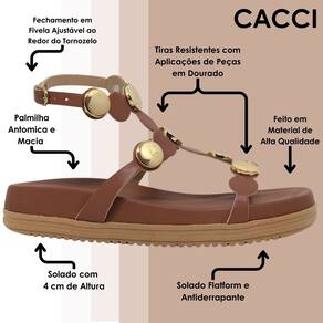 Descubra o equilíbrio perfeito entre estilo e conforto com nossa sandália flatform Cacci, uma combinação perfeita entre moda e conforto. Com um design moderno, ela oferece uma opção versátil para quem busca praticidade sem perder o charme.