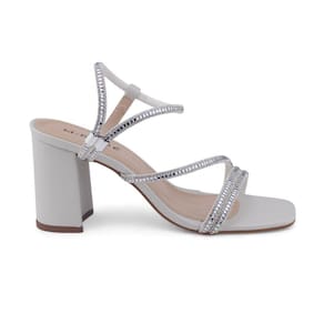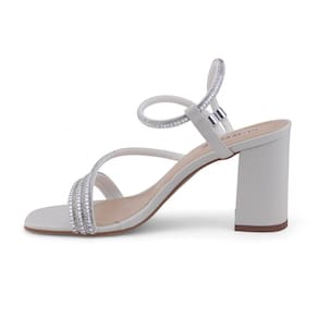 Sandália Feminina M. Rose 197-02 Salto Bloco Brilho BRANCO OFF 34
