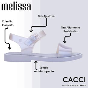Confeccionadas em Melflex, material característico da marca Melissa, essas sandálias são leves e confortáveis, ideais para o público feminino adulto.