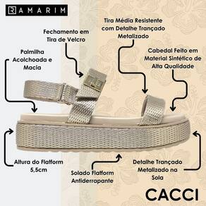 Transforme seu estilo com a Sandália Flatform Metalizada da Ramarim! Adquira já a sua e sinta a combinação perfeita de conforto e elegância!