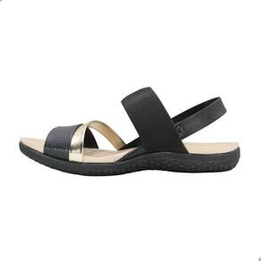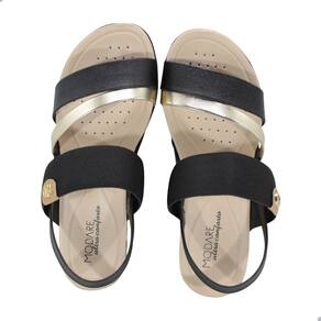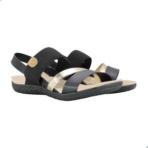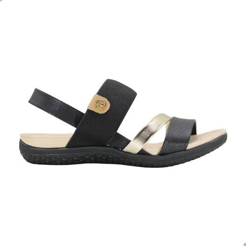 Com design moderno, o modelo combina tiras em preto com um detalhe metalizado em dourado, trazendo sofisticação na medida certa. A tira elástica no peito do pé garante um ajuste confortável e seguro, enquanto a tira traseira oferece mais estabilidade ao caminhar.