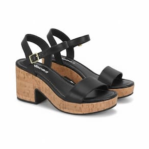 - Salto bloco em estilo cortiça que une modernidade e naturalidade ao visual.