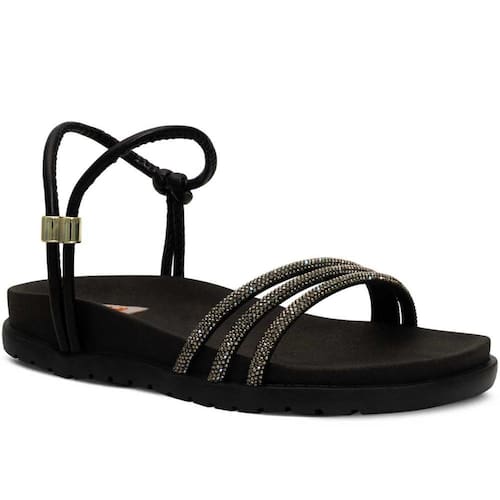 Confeccionado em tiras com strass, modelo super moderno e despojado. Possui palmilha com encaixe perfeito para os pés e o solado antiderrapante.