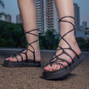 Sandália Feminina Papete Aranha Modelo Gladiadora com Amarração na Perna Preto - 40 - Preto