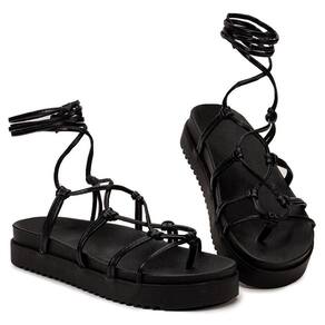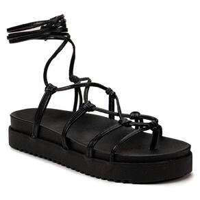 Sandália Feminina Papete Aranha Modelo Gladiadora com Amarração na Perna Preto - 34 - Preto