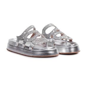 Sandália Feminina Papete Flatform Metalizada Strass Pedraria - 33 - Prata