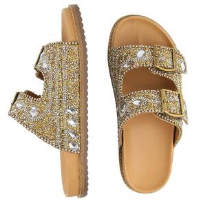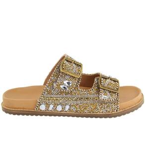 Sandália Feminina Papete Flatform Pedraria Brilho Fivela - 36 - Amarelo Ouro