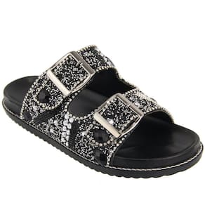 Encontre o equilíbrio perfeito entre estilo, conforto e versatilidade com a nossa extraordinária Sandália Papete Feminina com pedraria. Esta peça essencial do seu guarda-roupa harmoniza moda e funcionalidade, garantindo o máximo conforto para seus pés, em qualquer ocasião. Elaborada com materiais tecnológicos, e um solado flatform em TR resistente, esta sandália proporciona o melhor em cada passo que você dá. Cabedal em pedraria de strass e brilhos.