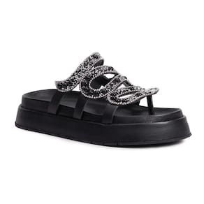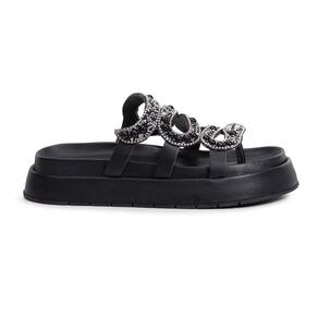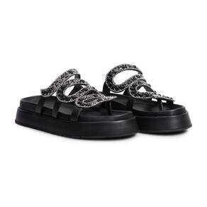 Sandália Feminina Papete Flatform Pedraria Strass Brilho - 36 - Preto