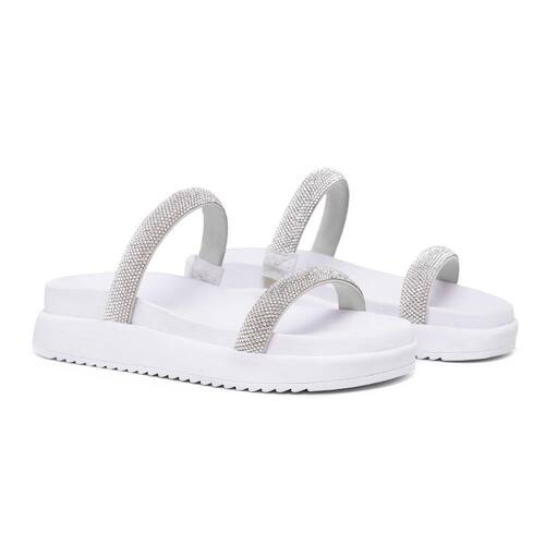 Descubra a elegância e o conforto combinados na nossa Sandália Feminina Papete em Tiras Crystal Strass Brilho. Confeccionada em material tecnológico, e solado flatform em borracha, seu design sofisticado e detalhes em cristais que brilham, essa sandália é perfeita para mulheres que valorizam o estilo sem abrir mão do conforto.