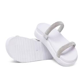 Sandália Feminina Papete Flatform Strass Confortável Tiras - 40 - Branco