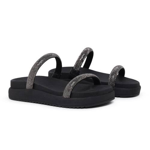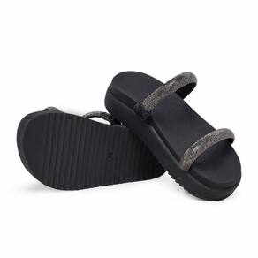 Descubra a elegância e o conforto combinados na nossa Sandália Feminina Papete em Tiras Crystal Strass Brilho. Confeccionada em material tecnológico, e solado flatform em borracha, seu design sofisticado e detalhes em cristais que brilham, essa sandália é perfeita para mulheres que valorizam o estilo sem abrir mão do conforto.