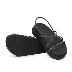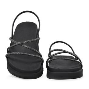 Sandália Feminina Papete Flatform Tiras Strass Confortável - 35 - Preto