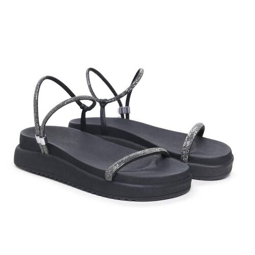 Descubra a elegância e o conforto combinados na nossa Sandália Feminina Papete em Tiras Crystal Strass Brilho. Confeccionada em material tecnológico, e solado flatform em borracha, seu design sofisticado e detalhes em cristais que brilham, essa sandália é perfeita para mulheres que valorizam o estilo sem abrir mão do conforto.