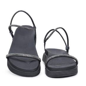 Descubra a elegância e o conforto combinados na nossa Sandália Feminina Papete em Tiras Crystal Strass Brilho. Confeccionada em material tecnológico, e solado flatform em borracha, seu design sofisticado e detalhes em cristais que brilham, essa sandália é perfeita para mulheres que valorizam o estilo sem abrir mão do conforto.