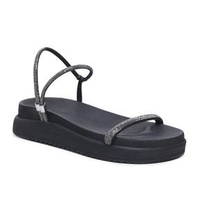 Sandália Feminina Papete Flatform Tiras Strass Elegante - 37 - Preto