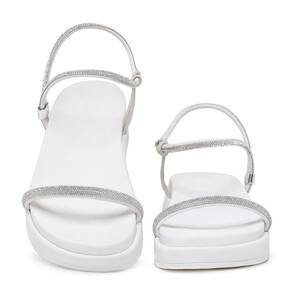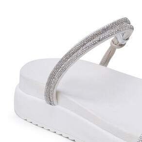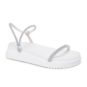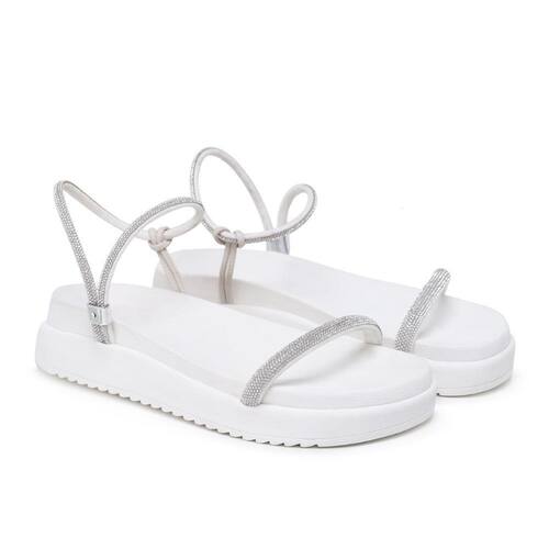 Sandália Feminina Papete Flatform Tiras Strass Elegante - 39 - Branco
