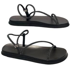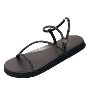 O destaque dessa sandália são as tiras brilhantes e ajustáveis. As tiras, feitas de um material durável e de alta qualidade, envolvem o pé de maneira confortável. Cada tira é cuidadosamente decorada com strass brilhantes, que capturam e refletem a luz, adicionando um toque de glamour e sofisticação ao design.