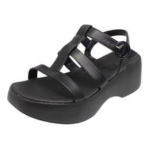 Altura na medida certa: Salto plataforma de 5,5 cm com bico de 3,5 cm, garantindo equilíbrio e conforto.