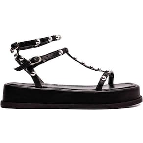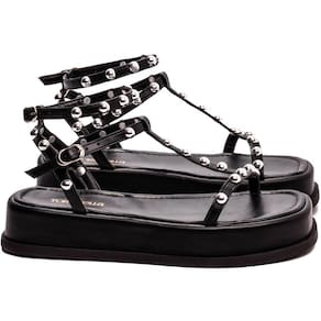 Material: Napa Preto Enfeite: Fivela de Ajuste na Cor Prata Apliques na cor Prata Forro: Napa na Cor Preto Palmilha: 8 mm de Espessura, Espuma em EVA, Revestida em Napa Preto Plataforma: com 4 cm de Altura na parte de Tras e 3,5 cm de Altura na parte da Frente, Revestido em Napa Preto Solado de TR com antiderrapante na cor Preto.