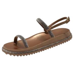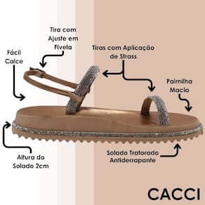 O destaque dessa sandália são as tiras adornadas com strass cintilantes. As tiras, feitas de um material durável e de alta qualidade, envolvem o pé de maneira confortável. Cada tira é cuidadosamente decorada com strass brilhantes, que capturam e refletem a luz, adicionando um toque de glamour e sofisticação ao design. Conta também com uma tira ajustável para deixar o calce mais fácil.