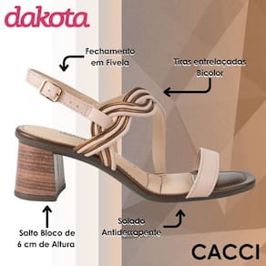 Elegância e conforto para o seu dia a dia! A Sandália Salto Baixo Dakota é perfeita para quem busca sofisticação sem abrir a mão do bem-estar.