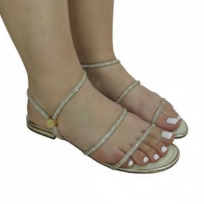 Seu cabedal com tiras finas decoradas com strass adiciona um brilho elegante e delicado, destacando os pés com sutileza. O solado rasteiro leve e flexível proporciona conforto e segurança, enquanto a palmilha macia torna o caminhar mais agradável em qualquer ocasião.