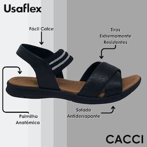 Garanta sua agora! A Sandália Rasteira Usaflex é a escolha ideal para quem não abre mão de conforto e estilo. Adicione essa peça versátil ao seu guarda-roupa e experimente o prazer de caminhar com muito mais leveza!