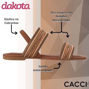 A Sandália Rasteira Dakota é a escolha perfeita para quem busca conforto e estilo em um só modelo! Com um design moderno e versátil, ela se adapta ao seu dia a dia com leveza e praticidade, garantindo um toque de charme para qualquer look.