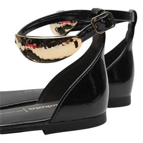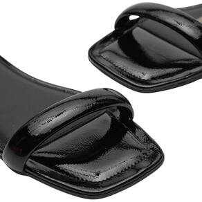 Tira envernizada: Acabamento sofisticado que realça a beleza da sandália.