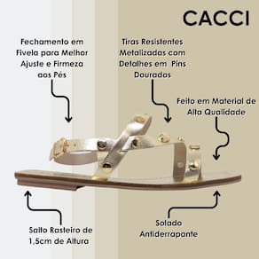 Dê um toque de estilo refinado aos seus dias com a Sandália Rasteirinha Metalizada da Cacci. Conforto e elegância caminham juntos para criar a combinação perfeita para suas produções!