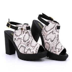 Sandália Feminina Salto Alto Bloco Naja Animal Print Moderna - 38 - Preto