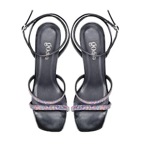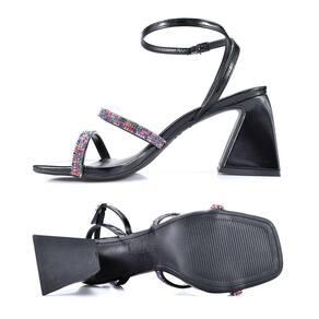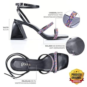Sandália Feminina Salto Alto com detalhes em strass colorido e fivela regulável, para maior conforto no caminhar para seus pés.