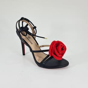 Sandalia de salto alto fino fashion linda, possui enfeite de rosa vermelha que é removível, pode usar como acessório da roupa também. Essa sandália ficou linda com esse salto fino de 12cm no número 41, a sola vermelha trazendo elegancia e poder ao look.