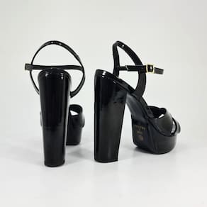 Lindo modelo de sandália em verniz preto, material muito confortável e que possui um brilho muito bonito.