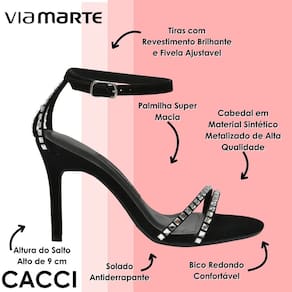 A sandália feminina preta da Via Marte é sinônimo de elegância e sofisticação. Com salto alto fino e bico suavemente arredondado, ela eleva qualquer look, transformando produções simples em visuais refinados. As tiras com acabamento brilhante garantem um toque glamouroso, ideal para festas, jantares ou eventos especiais. Ao mesmo tempo, seu design versátil faz dela uma opção elegante para o dia a dia, unindo conforto e estilo em um único calçado perfeita para quem deseja se destacar com classe e bom gosto.