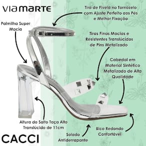 A Sandália Feminina Salto Alto Translúcida da Via Marte é a escolha perfeita para quem busca um toque de modernidade e sofisticação no visual. Ideal para ocasiões especiais, esse modelo é um verdadeiro destaque pela sua elegância única.