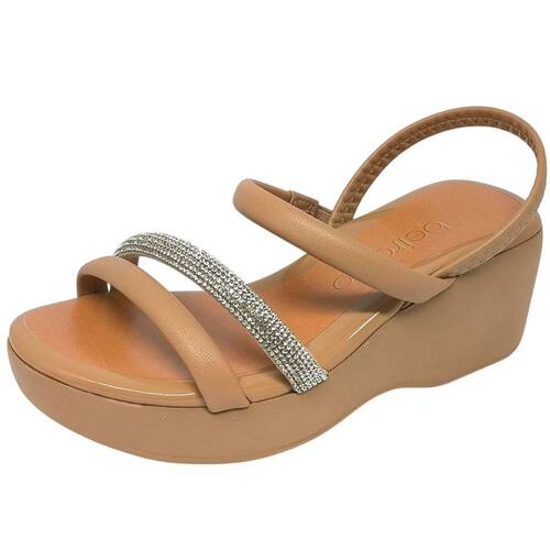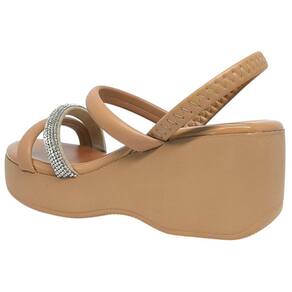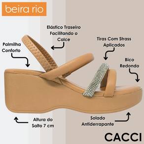 Sandália Feminina Salto Anabela Strass Conforto Beira Rio - 33 - Bege médio